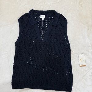 Cyrus Women's Deep Blue V-Neck Knit Sweater Vest Large Style: C602405