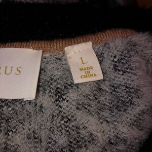 Cyrus Womens Large White Diamond Geometric Eyelash Fuzzy Pullover Sweater Size L