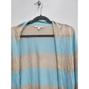 Cyrus Womens Cardigan Sz Small Tan Blue Striped Open Front Lightweight Longline