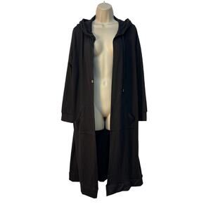 Cyrus Women’s Long Sleeve Open Front Hooded Duster with Pockets Color Black Size XL