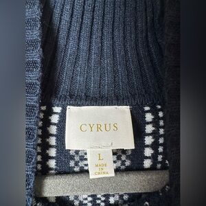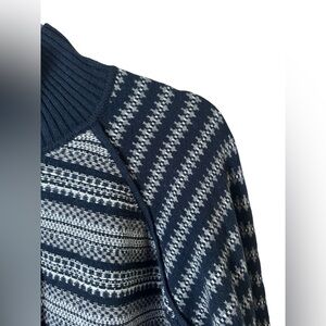 Cyrus Women’s Sweater Large Blue Striped Knit Long Sleeve Mock Neck Pullover
