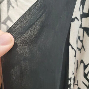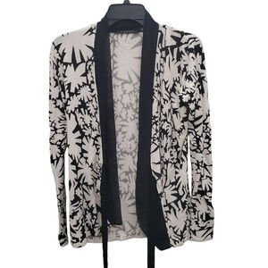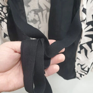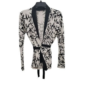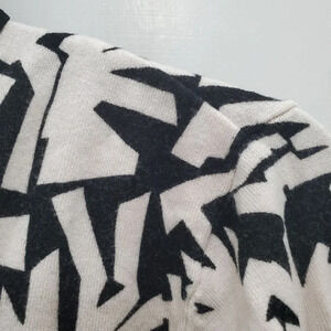 Cyrus Women's White Black Abstract Geo Print Chiffon Trim Tie Knit Cardigan M