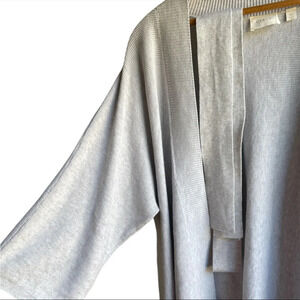 Cyrus gray open front ribbed trim waffle knit belted cardigan XL