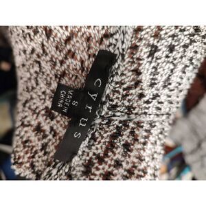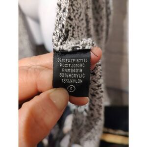 Style:. Long cardigan with pockets. It is labeled as a small but fits up to a size large as well due to the style.