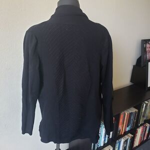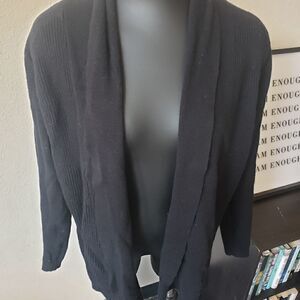 Black sweater with rigged patterns. Super soft and comfortable. Perfect with any cami or vneck. Will fit up to size 10