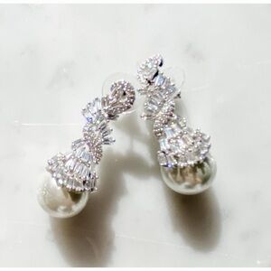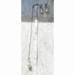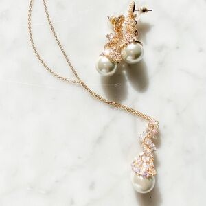 Cz Pearl Pendant Necklace and Earring Set