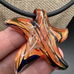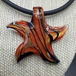 Cz by Kenneth Jay Lane Glass Pendant Necklace Starfish Cord Red Gold Black