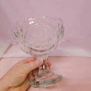Czech Art Glass Pedestal Bowl, Candy, or Nut Dish, Fleur-De-Lis Design