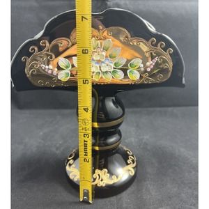 Czech Bohemian Egermann 24K Gold Enamel Black Art Glass Napkin Holder