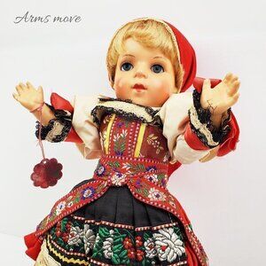 Czech Doll Lidova Tvorba VTG 60s UH Brod Traditional Outfit Moving Arms Legs 13"