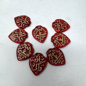 Czech Glass Ruby Red Pendants w/ Gold Metallic 8 pc Writing Arabic