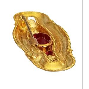 Czech Gold Tone Art Nouveau-style Red Prong Set Rhinestone Bar Brooch, M969