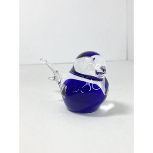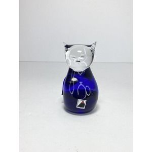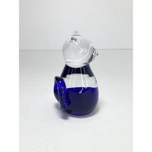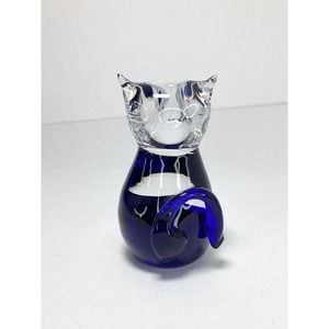 Czech Republic Handblown Art Glass Cobalt Blue Cat & Bird Figurines, 31/2”.