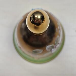 ⦁ Green glass bell with Enameled Gold and hand painted flowers
