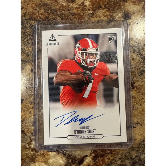 Keywords: D'Andre Swift, rookie card, autographed, Georgia Bulldogs, football, trading card, sports card, collector, memorabilia, Panini Luminance, RC, year one
