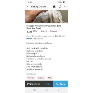 D' Ascoli Aisha Maxi Dress Linen Soft Rose Size Small Bohemian