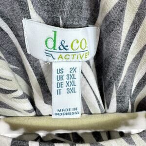 D & Co. Active Gray White Palm Leaf Print Long Sleeve Soft Stretchy Top Size 2X