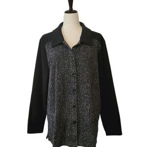 D & Co. Back & Gray Patterned Fleece Button Down Long Sleeve Shirt Size L