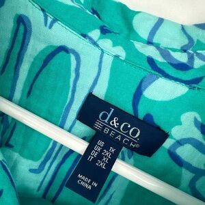D & Co Beach Plus size 1X Cotton Gauze Button Down Shirt Coverup Tunic dress top