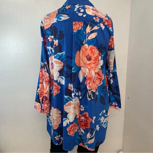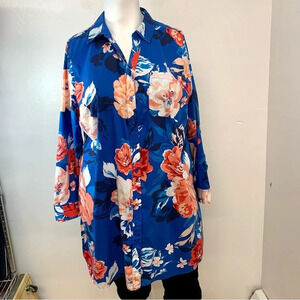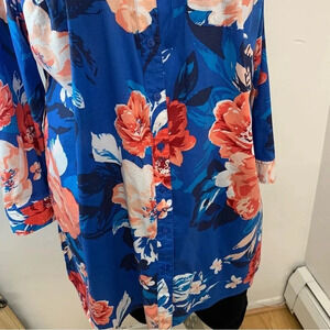 D Co Beach Shirt Woman 2X Cover Up Blue Print Button Front Pockets Tunic Light
