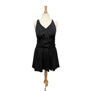 D & Co Black Slimming Ruched Swim Dress 16 skirted bathing suits modest