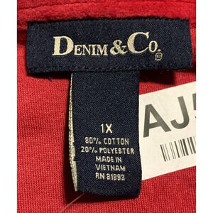 D & Co. Button Front Big Shirt Women Size 1X Red Velour Shirttail Hem