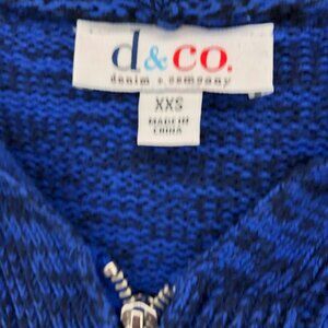 D & Co Sweater Womens XXS Blue Marled Cardigan Full Zip Hooded Pockets Lounge