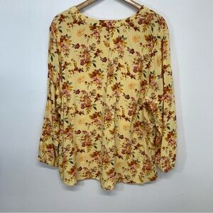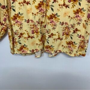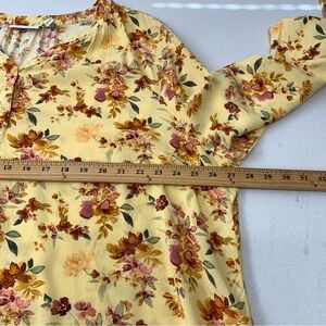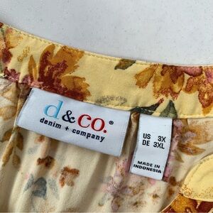 D & Co Top Woman 3X Yellow Floral Pop Over Lightweight 3/4 Sleeve Casual Work