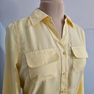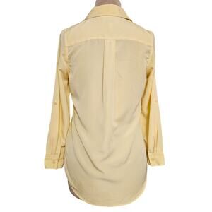 D & Co Top Womens XXS Button Front Long Sleeve Chest Pockets Yellow Minimal
