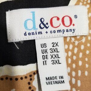 Up for sale is - D & Co Womens Black Tan 3/4 Sleeve Blouse Plus Size 2X Retro Office Party