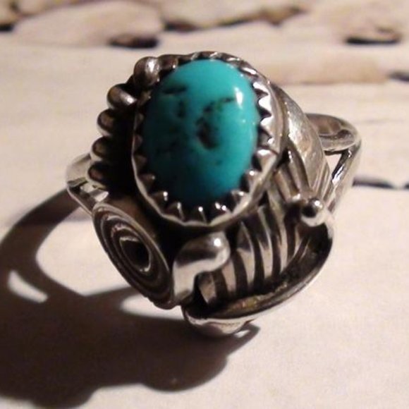 D Detendale Navajo Art Ring Turquoise Sterling SIZE 6