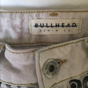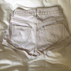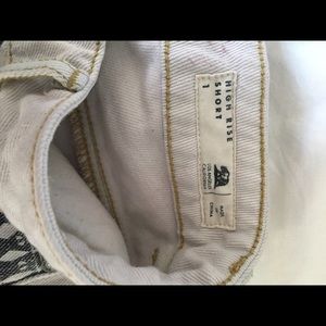 Purchased from PacSun, worn a couple of times over the summer. Love these shorts but I can't fit them anymore. There's a small stain near the tag on the inside, but not noticeable when they're on. Denim is like a light light blue (almost white).