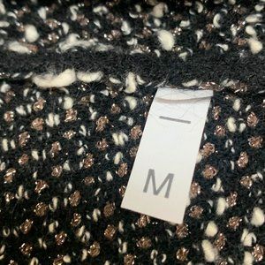 D. EXTERIOR Black White Metallic Wool Blend Boucle Knit Cardigan