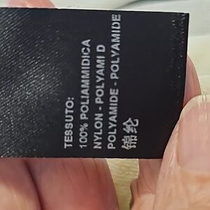This lovely top has sheer sleeves. Fitted stretch fabric. Size large, pit to pit flat measurement is 19,". The sleeves are 20". The top to bottom length is 26". Very good used condition and quality.