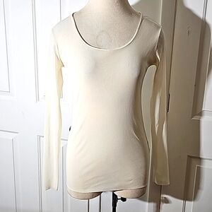 D. EXTERIOR women's fitter stretch top made in Italy. Cream color size large.