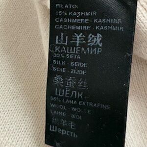 D. Exterior Cashmere Blend Mock Neck Sweater. Cream color. New without tags. Size small. 15% Cashmere, 30% Silk, 55% Wool.