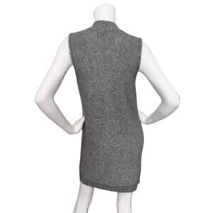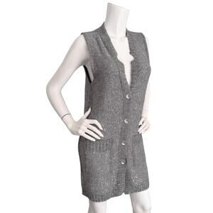 Gray knit with sequin embellishments, sleeveless, front button closures, rib knit trim.