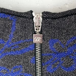 Features: 32" chest, 38.5" length, polyester/viscose blend, back zip with logo pull, textured fabric, stretch, stretchy, regencycore, funky, unique, evening, cocktail, wedding guest, date, party, sexy