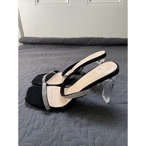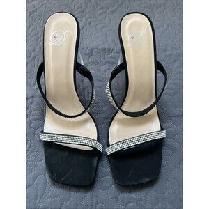 D❤️ Facing-S Black NBPU Faux Suede & Diamanté Strappy Sandal SZ 9M Bling Chic
