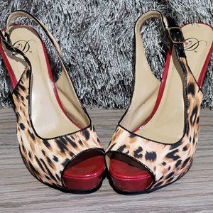 D Leopard Print Red Sole Sling Back Heel Sz 7