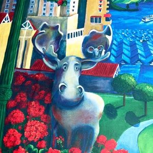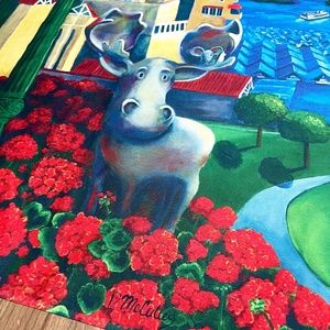 D McCulley Moose in the City Floral Flag Tapestry Wall Hanging Decor