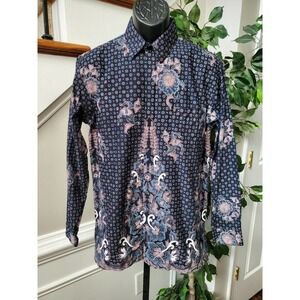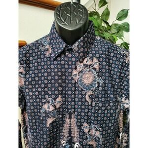 D & N Mens Black Floral Polyester Collared Long Sleeve Buttons Down Shirt Size L.