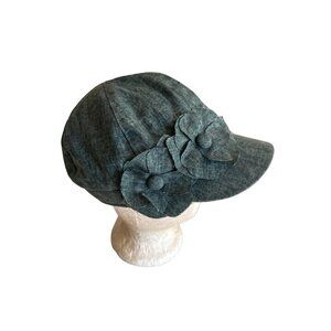 D & Y Blue Denim Flower Detail Hat Cap One Size Stretch Fit