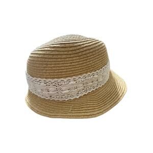 D & Y Women's Beach Sun Hat OS Beige Ivory Lace Accent Summer Vacation New