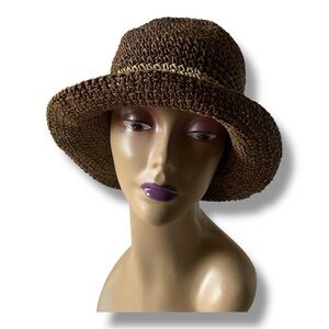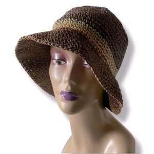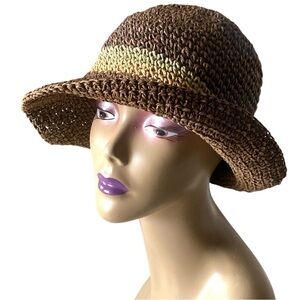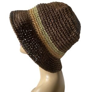 Stylish brown/tan/sage Crochet Straw bucket sun hat perfect for any outdoor occasion. Stay cool and fashionable with this versatile accessory. OS NEVER WORN