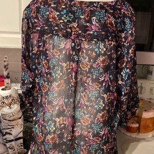 D womens Sara Michelle casual floral sheer 3/4 sleeve plus size blouse 2X