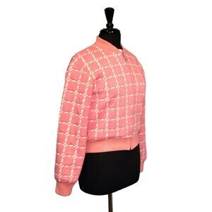 NEW AUTHENTIC T ALEXANDER WANG Coral Cotton Blend Check Pattern Embossed Zip Front Bomber Jacket