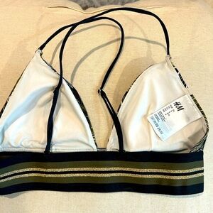 D01.16. H&M Green/Gold Stripe Tropical Print Triangle bikini top Sz 6