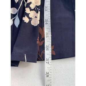 D1 Chaps Belmont Blue Cream Brown Floral Long Skeeve Stretchy Midi Dress Size XS