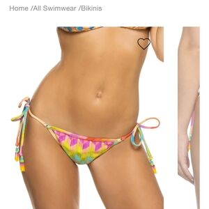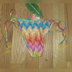 D1. NWT FARM RIO Ribbed Light Chevron Tie Side Brazilian Bikini Bottom Size L